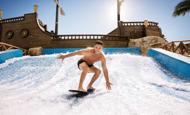 Hotel familiar con playa tranquila, parque acuático infantil, espectáculos nocturnos y restaurantes temáticos. Diversión garantizada para niños y adultos durante toda la estancia.